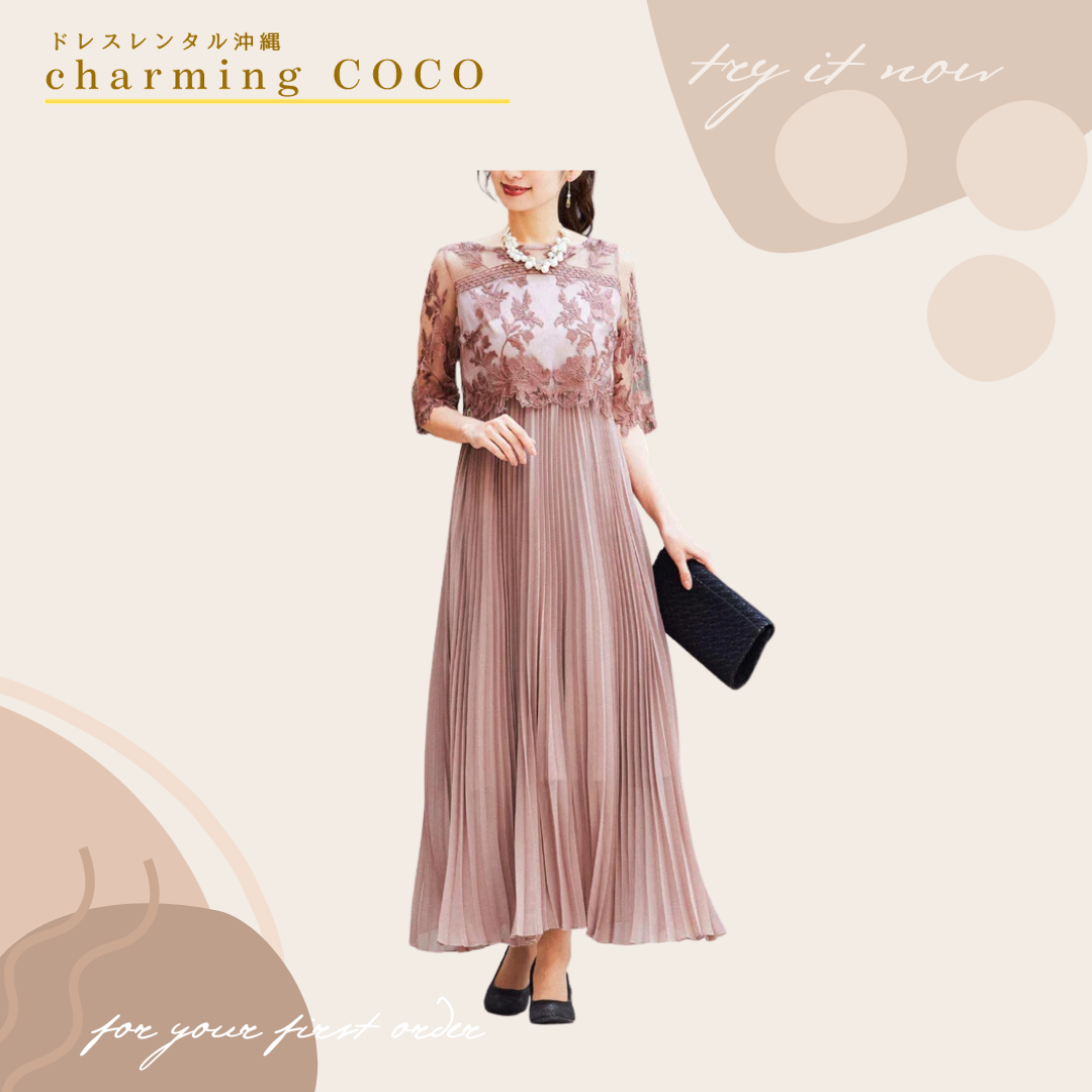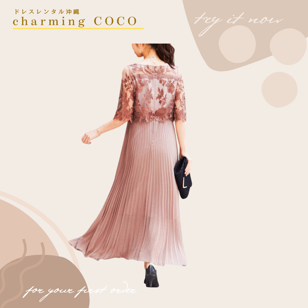 デコルテラインを綺麗に魅せてくれる刺繍レース使いの👗♡