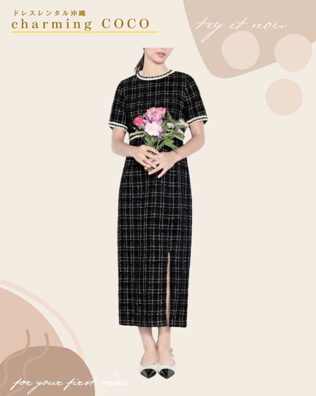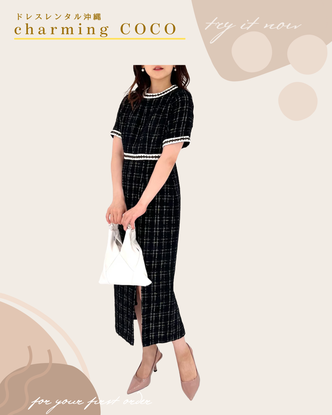 ツイード生地で秋冬にも着用しやすいデザインです👗🖤