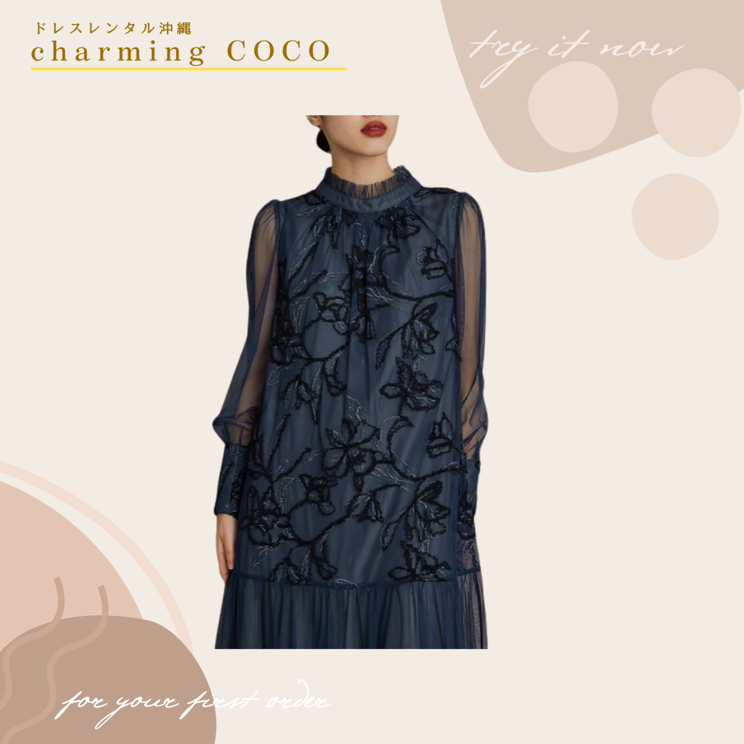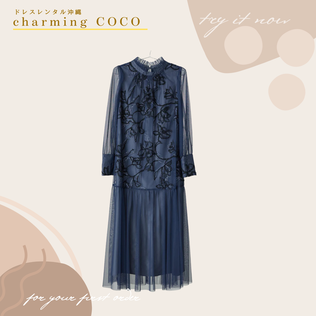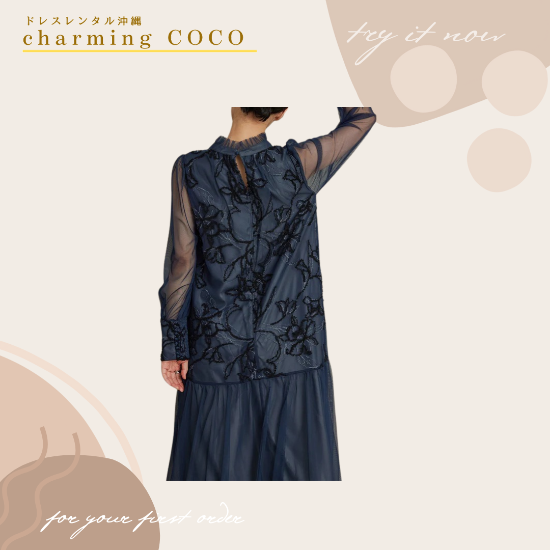 フェザーフラワーチュールドレス【ネイビー】