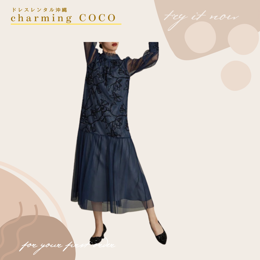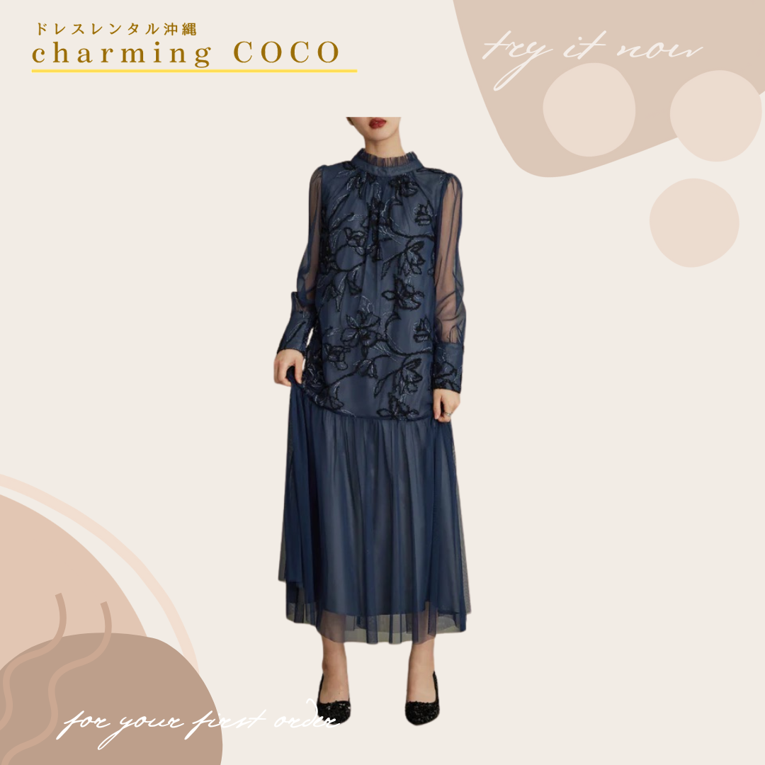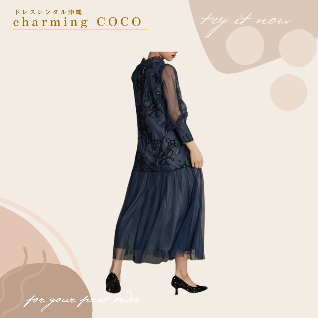 フェザーフラワーチュールドレス【ネイビー】