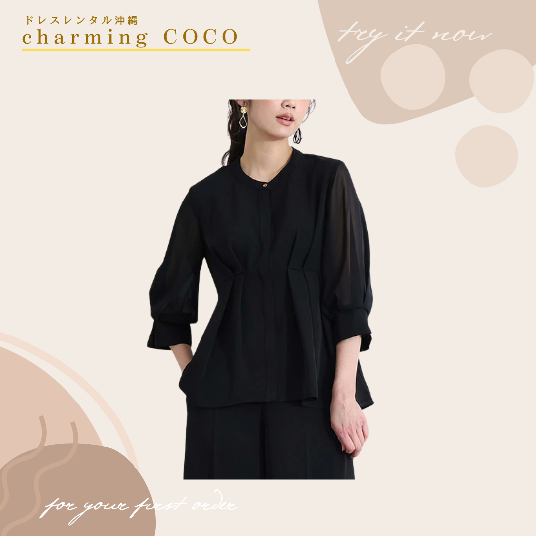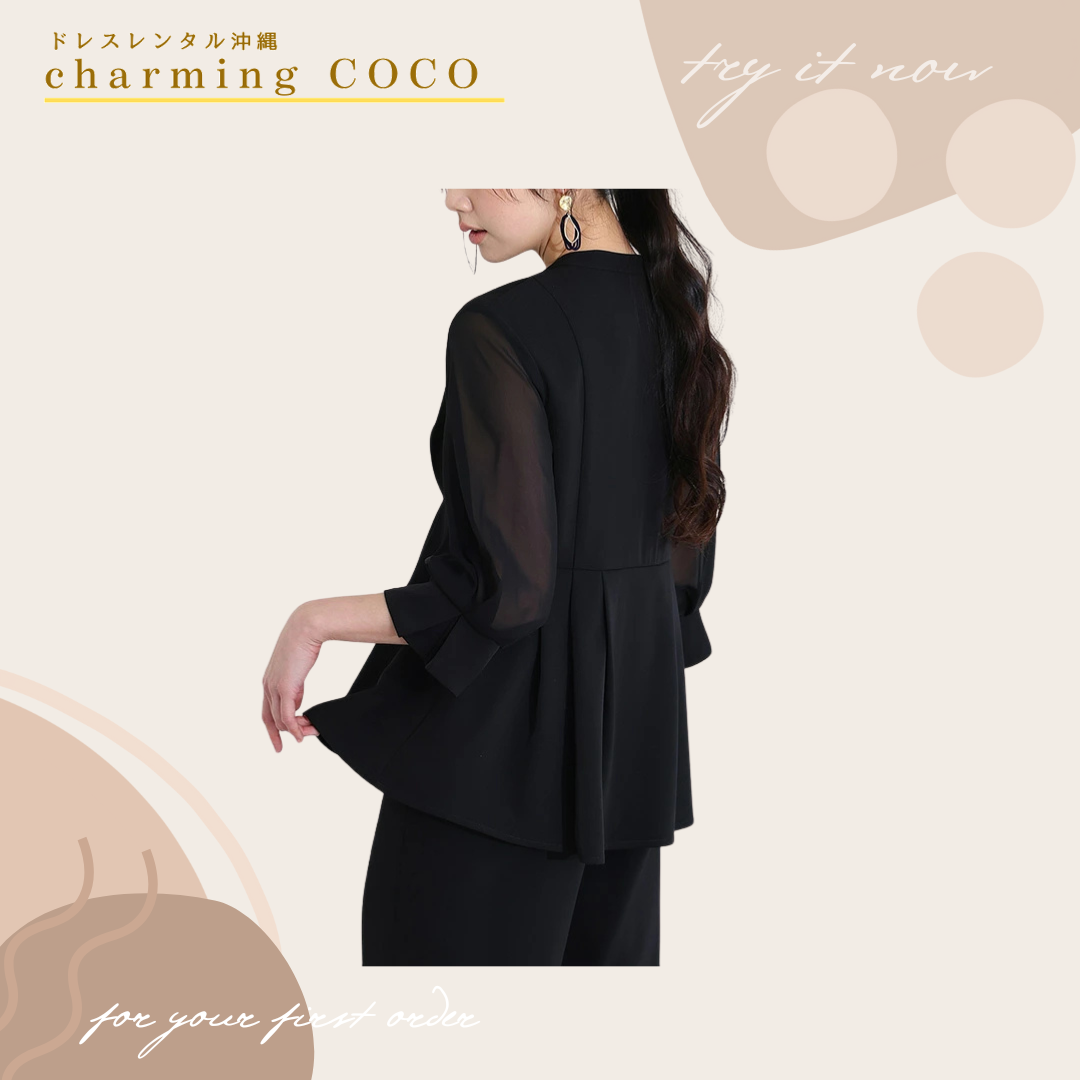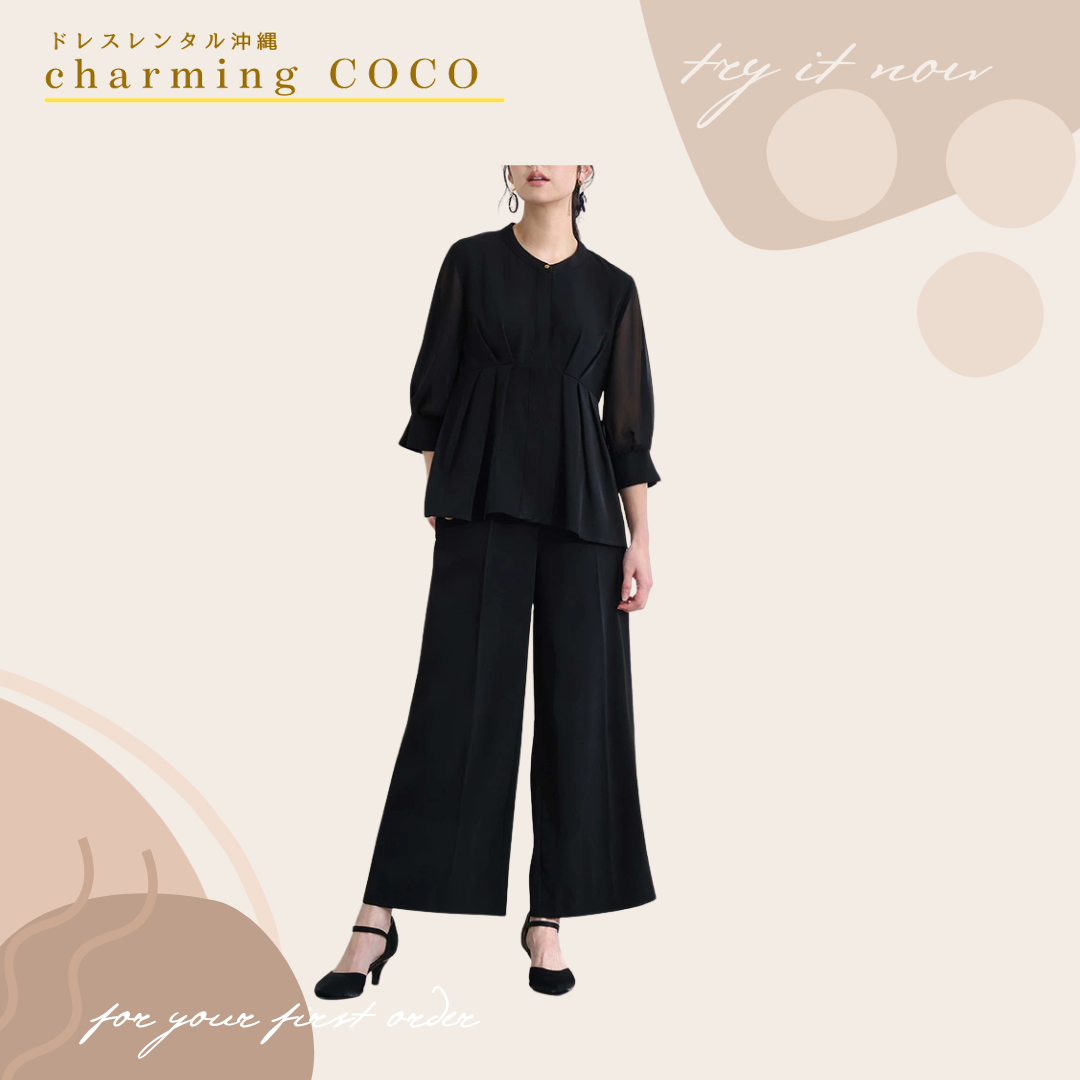 ペプラムタックセパレートワイドパンツドレス【ブラック】