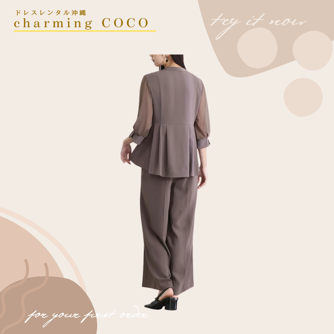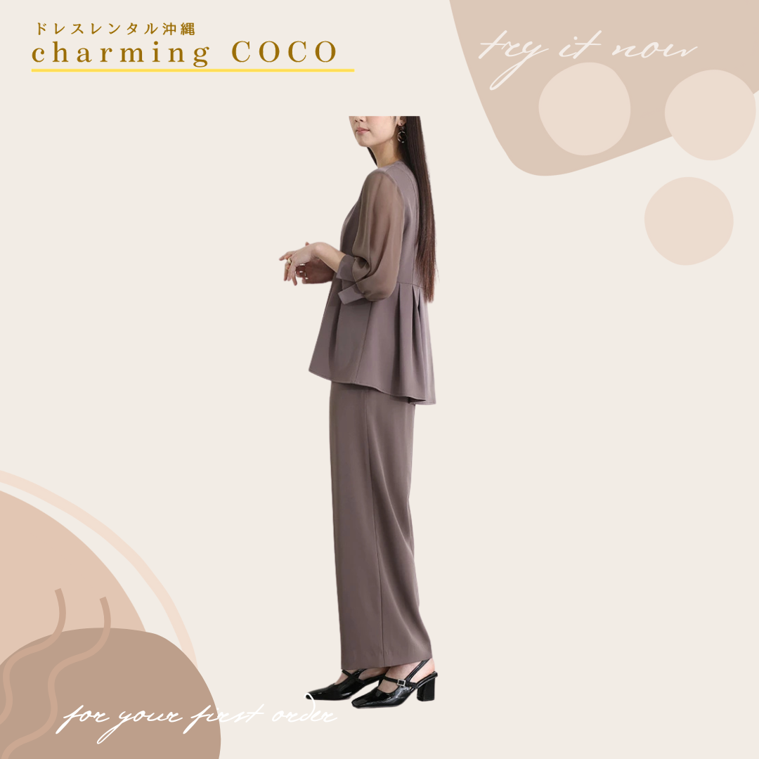 ペプラムタックセパレートワイドパンツドレス【モカ】