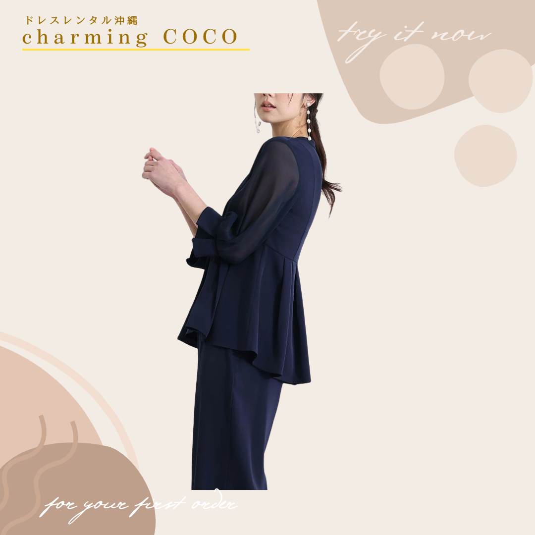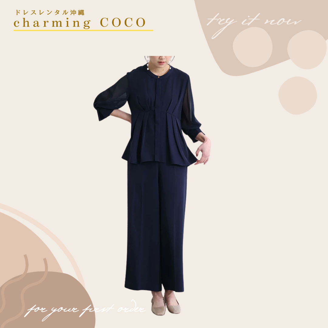 ペプラムタックセパレートワイドパンツドレス【ネイビー】