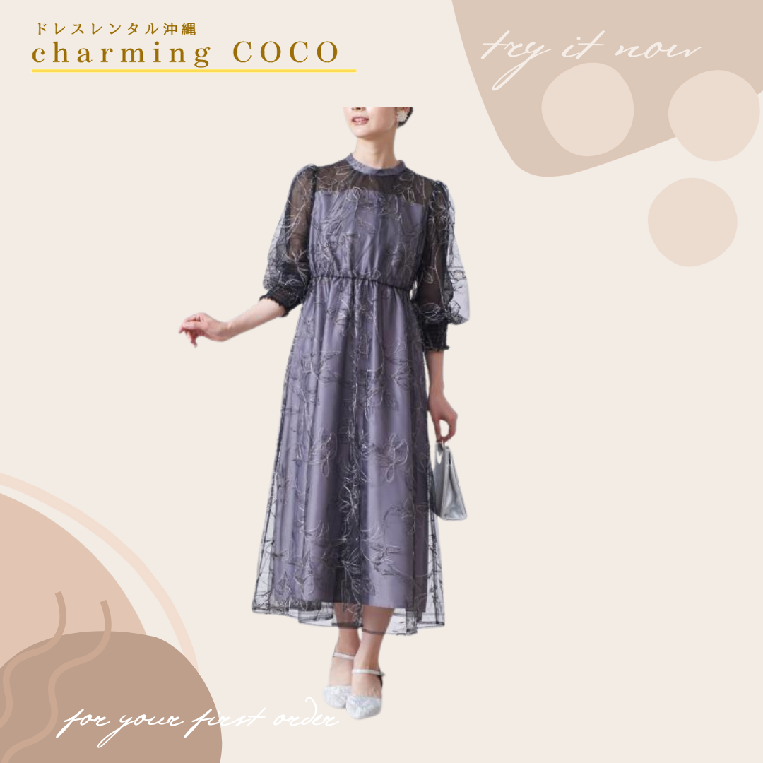 ラメ刺繍が華やかな印象を与えるドレス👗✨
