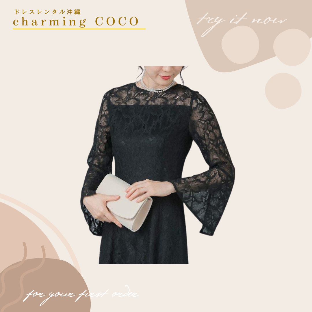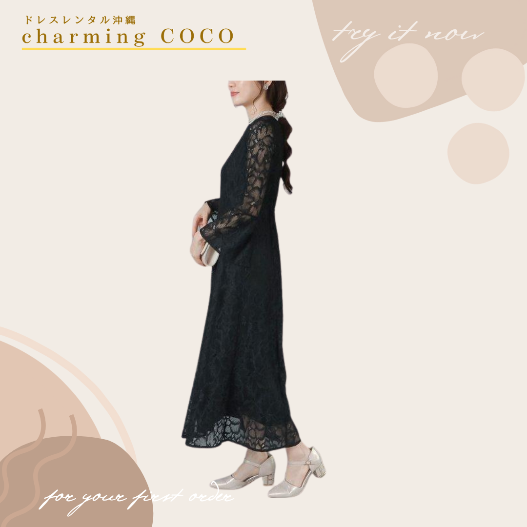 レースロングバックストラップドレス【ブラック】