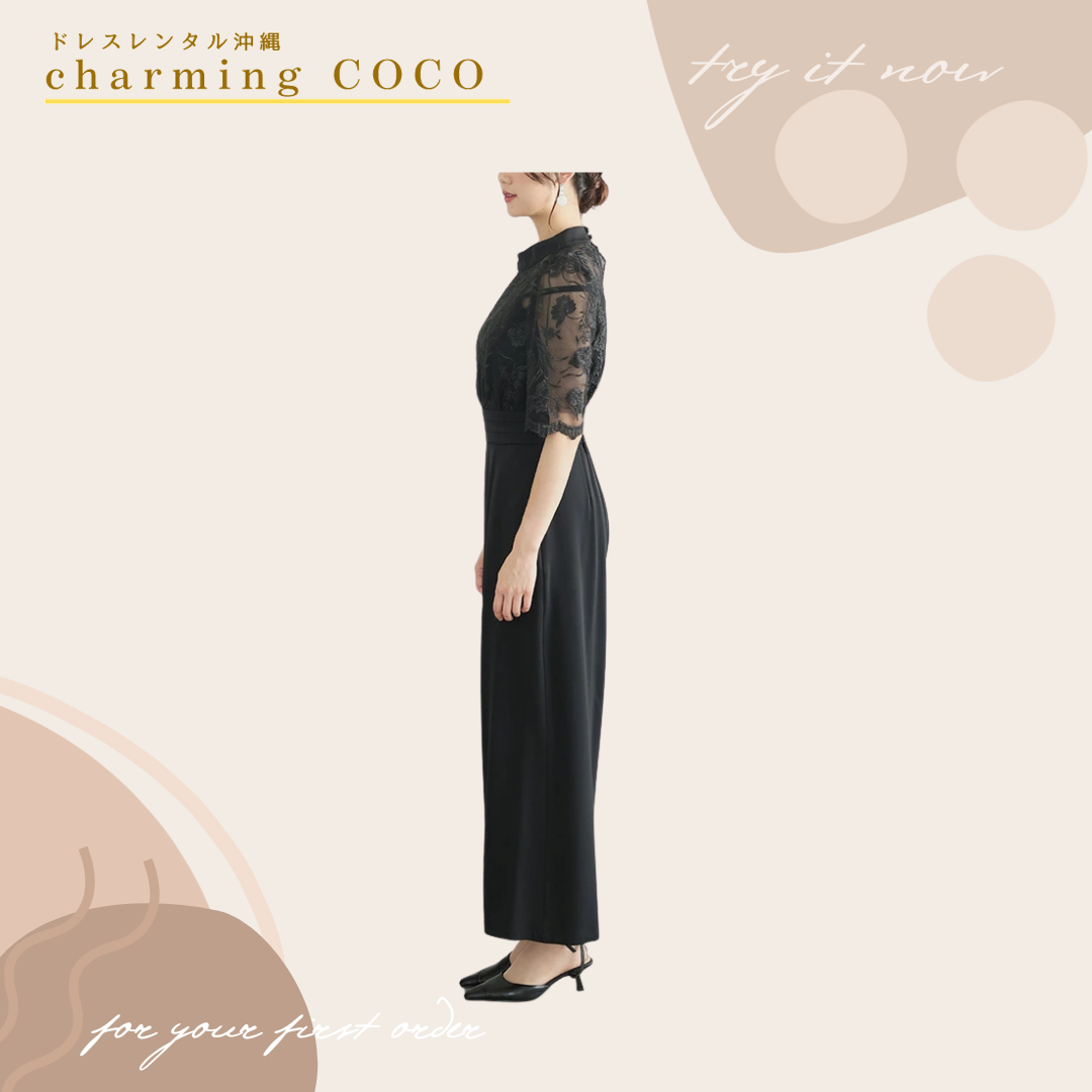 刺繍入りのレースが華やかな印象を演出するトップスと